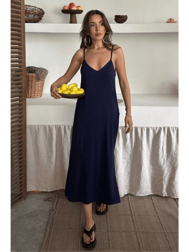 Kadın Siyah Asansör Askılı Çift Yırtmaçlı Helen Elbise
